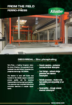 Ferro-Press has upgraded its pretreatment line with Kluthe’s innovative zinc phosphate technology: DECORRDAL.